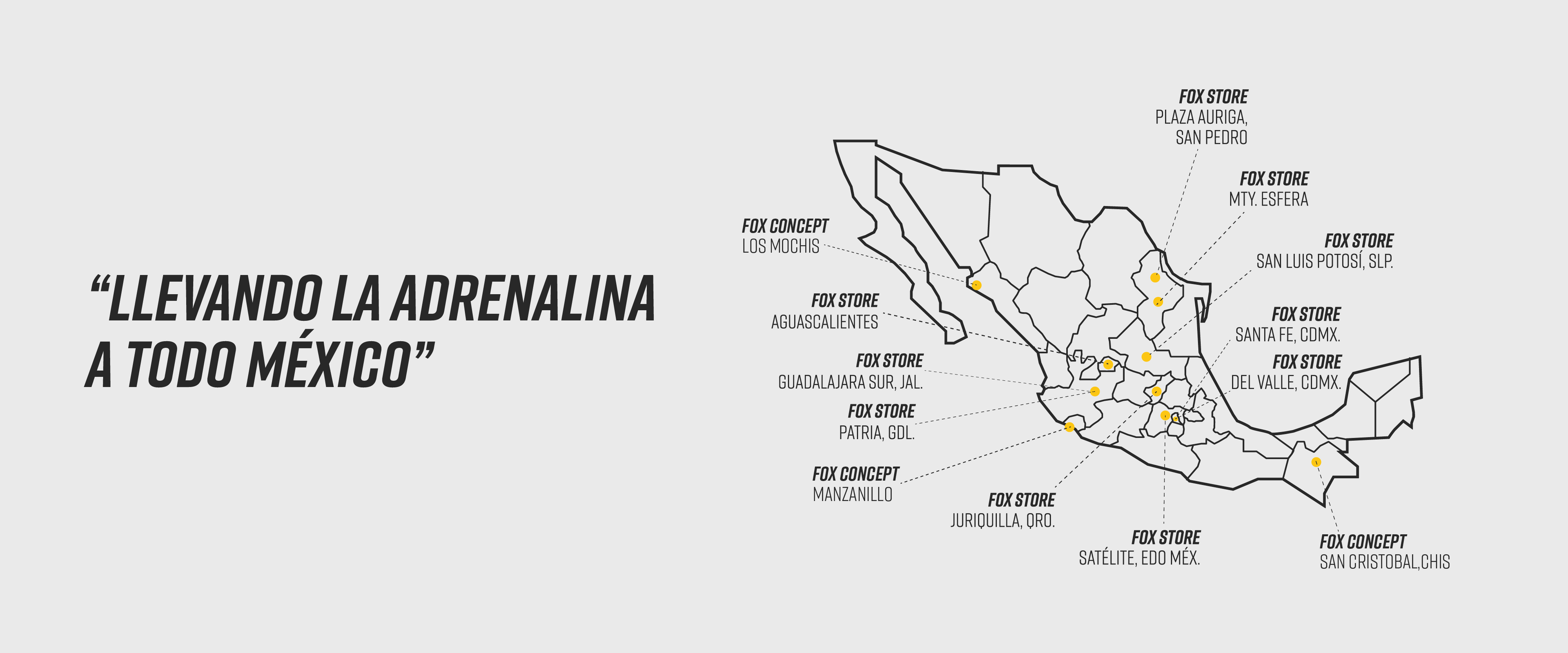 Tiendas oficiales operadas por Lifex que ofrecen la experiencia completa de Fox Racing en México: equipo técnico, estilo de vida, asesoría especializada y ambientación 100% alineada a la marca.